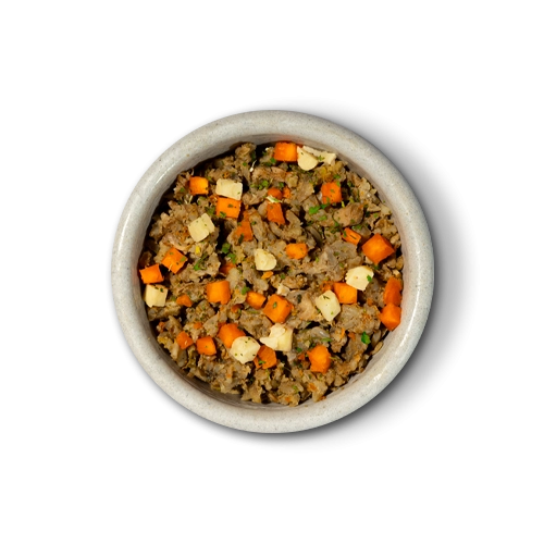 Peito de frango, fígado de frango, coração suíno, arroz parboilizado, cenoura, abobrinha italiana, aveia em flocos, psyllium em flocos, semente de linhaça, óleo de girassol, óleo de peixe, levedura desidratada e inativada (Saccharomyces cerevisiae), prebiótico parede celular de levedura (MOS- Mananoligossacarideo e betaglucanas), extratos vegetais (yucca, alecrim, chá verde e hortelã) cloreto de sódio (sal comum), ácido fólico, ácido pantotênico, biotina, carbonato de cálcio, cisteína, cloreto de colina, cloreto de potássio, cobalto aminoácido quelato, cobre aminoácido quelato, complexo selênio aminoácido, ferro aminoácido quelato, fosfato bicálcico, glicina, histidina, isoleucina, l-arginina, l-glutamina, l-leucina, l-lisina, l-metionina, l-treonina, l-triptofano, l-valina, magnésio aminoácido quelato, manganês aminoácido quelato, niacina, prolina, tirosina, transquelato de iodo, vitamina a, vitamina b1, vitamina b12, vitamina b2, vitamina b6, vitamina d3, vitamina e, vitamina k3 e zinco aminoácido quelato.