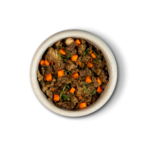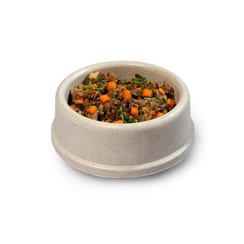 Peito de frango, fígado de frango, coração suíno, arroz parboilizado, cenoura, abobrinha italiana, aveia em flocos, psyllium em flocos, semente de linhaça, óleo de girassol, óleo de peixe, levedura desidratada e inativada (Saccharomyces cerevisiae), prebiótico parede celular de levedura (MOS- Mananoligossacarideo e betaglucanas), extratos vegetais (yucca, alecrim, chá verde e hortelã) cloreto de sódio (sal comum), ácido fólico, ácido pantotênico, biotina, carbonato de cálcio, cisteína, cloreto de colina, cloreto de potássio, cobalto aminoácido quelato, cobre aminoácido quelato, complexo selênio aminoácido, ferro aminoácido quelato, fosfato bicálcico, glicina, histidina, isoleucina, l-arginina, l-glutamina, l-leucina, l-lisina, l-metionina, l-treonina, l-triptofano, l-valina, magnésio aminoácido quelato, manganês aminoácido quelato, niacina, prolina, tirosina, transquelato de iodo, vitamina a, vitamina b1, vitamina b12, vitamina b2, vitamina b6, vitamina d3, vitamina e, vitamina k3 e zinco aminoácido quelato.